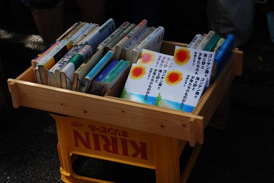 「売れてます」とK。「えっ」と箱を覗くと、拙著『ゴンゲン森と海と砂と少年たちのものがたり』が減っている。基本的には古本市であったが、新刊に近いものもよいというお墨付きがあったので置かせてもらった。Kいわく、「皆さん興味があるらしく、真っ先に手にとってくれるんですヨ」とのことだ。拙著は、たまたまクルマに置いてあった四冊という中途半端な数だったが、早い時間に完売してしまった。こう言う場所へ来るお客さんたちはよい感性を持っている、さすがだなあ……と、数が少なかったことを悔いた。