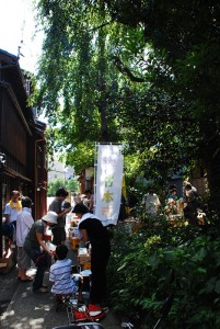 主たる店番担当のKは、ボクより少し遅れて会場に到着した。彼の友人であるOクンも後から来ることになっていた。しかし、ボクはゆっくりとはしていられない。すぐに主計町から柿木畠へと移動しなければならなかった。というのも、柿木畠の人たちが数年前から始めた「水かけ神輿まつり」の様子も窺いに行かねばならなかったからだ。