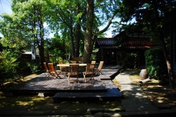 デッキのテーブルが変わっていた。丸い大きなサイズのものに変っていて、ちょっとした会合や、大皿を並べた食事会でもやったのだろうかと想像させる。