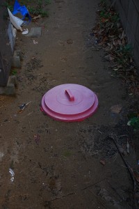 さらにおまけがあるのだが、後日またしても蓋は飛んでいた。今度は全く逆方向で、隣地の駐車場のド真ん中に、蓋は蓋らしい姿勢で横たわっていた。これでカンペキに蓋自身か、ボク自身かの自己責任問題であることが証明されたのだ。