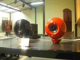 もうひとつ紹介すると、今年のAPECでも使われたという、輪島塗の円形ボックス型スピーカーなども、このお店のオリジナルだ。かなり前に考案されたものだが、すでにいくつか売れているらしい。注文を受けてからの製作であり、その期間もかなり長いので、高価であることは事実だが、しかし、コダワリ派のそれなりに潤っている人たちには、いい置物型スピーカーとして受け入れられている。