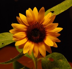 咲き始めてから二日後、咲いた中では最も背の低いやつをハサミで切り取り、食卓の上に置いてやった。食卓に黄色の花が映えて、なかなか食事に集中できなくなった。ビールなどは、気が付いたら空っぽになっていたりして、ついついまたもう一本と本数が増えていく。横を向いていたりすると、ちょっとすねているみたいで、どうしたんだよ・・・などと、声をかけてやりたくもなる。