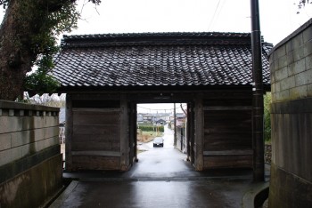 県の重要文化財で、「おいでまつり」という祭礼で、馬に乗った神主が、町を回った後だろうか、勢いよくこの門を走りぬけ大社に戻る。その際に近くの住民らが道路に塩をまき迎えるということだった。