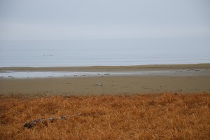一宮の海岸も静かだった。まだ小さな雨が落ちていたが、波は穏やかで、地元の人だろうか、傘をさした男の人が独り砂浜を歩いていた。