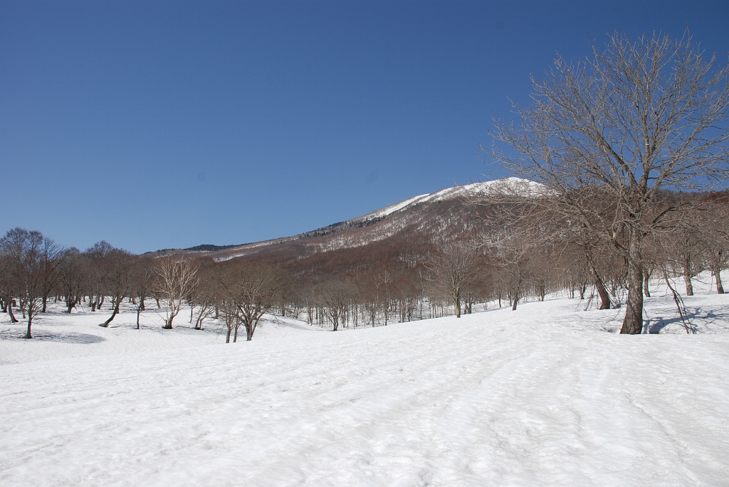 これから、下の方に滑り下りて、清水ヶ池から樹林帯を通ってクルマの方へと戻るが、クルマを置いた周辺にも広く開けた雪原があり、そこでも一登り・一滑りをして来ようと思っている。