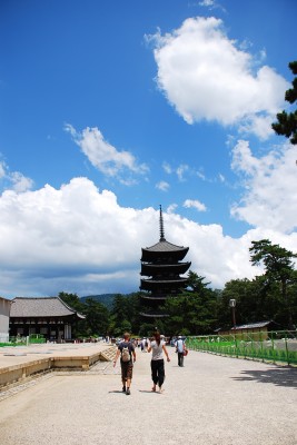 興福寺は東大寺のすぐ近くにあり、奈良公園を散策しながら移動できる。人の列と時間の乏しさから、有名な阿修羅(あしゅら)像のある国宝館には入らなかったが、五重塔や東金堂など、見せ場はたっぷり堪能した。