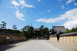 法隆寺にも多くの人が訪れていた。玄関にあたる南大門付近ではそれほどの広さを想像させないが、実際に中に足を踏み入れ、移動していくうちに、その広さを実感する。